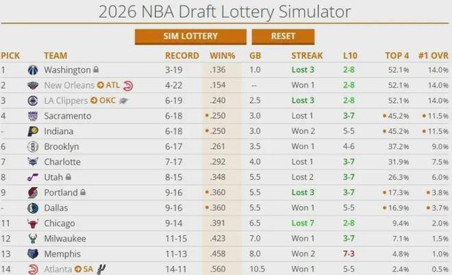 本场比赛过后,快船以6胜19负西部倒数第二&联盟倒数第三,好消息是明年的状元签概率来到并列最高的14%,以及首轮签前四概率提升至52.1%,坏消息是这个选秀权在目前以24胜1负傲视群雄的雷霆手里......