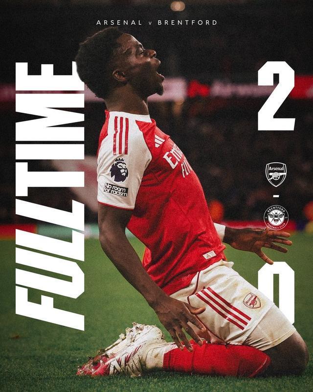 此役主场对阵布伦特福德,阿森纳凭借梅里诺和萨卡各入一球,以2-0的比分击败对手。