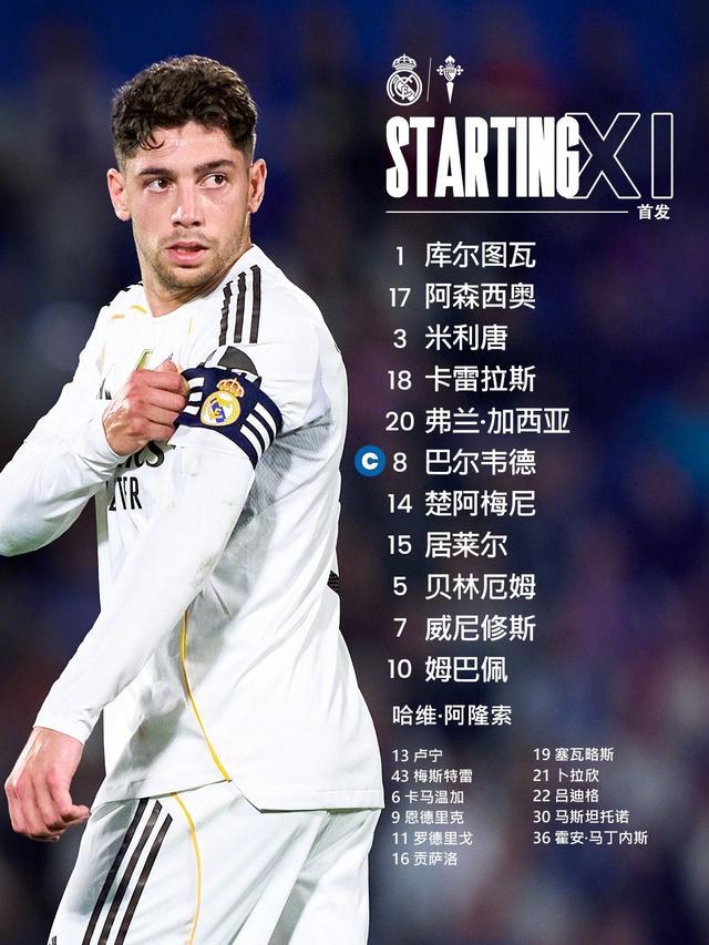 阿隆索此战派出姆巴佩和维尼修斯搭档双前锋,后防线无奈采用全新组合:劳尔-阿森西奥、米利唐、卡雷拉斯和弗兰-加西亚组成四后卫。