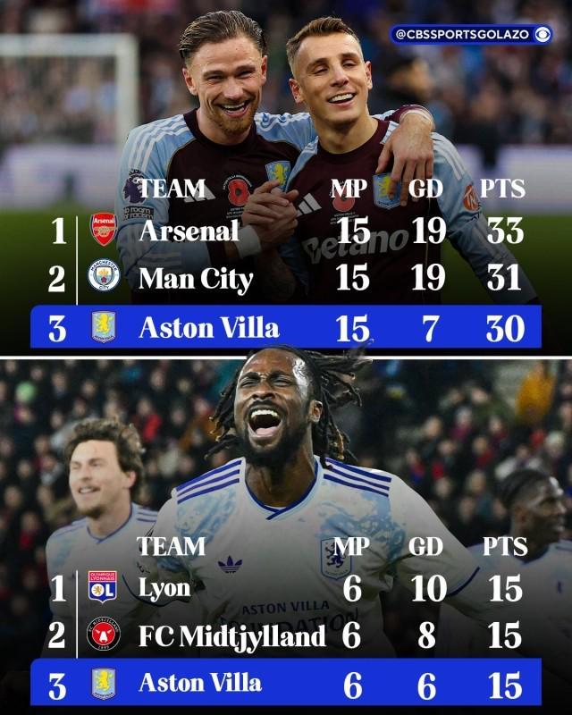 欧联杯联赛阶段第6轮,阿斯顿维拉客场2比1战胜巴塞尔,第12分钟格桑为维拉首开纪录,第34分钟沙奇里助攻达尼柳克追平比分,第53分钟蒂耶勒曼打入制胜球。 维拉已在各项赛事取得8连胜,是同期5大连胜赢球最多的球队,目前高居英超第3和欧联杯第3。作为一支顶级联赛球队维拉上一次更长的连胜记录是1914年的11连胜,那也是他们队史最长连胜纪录。