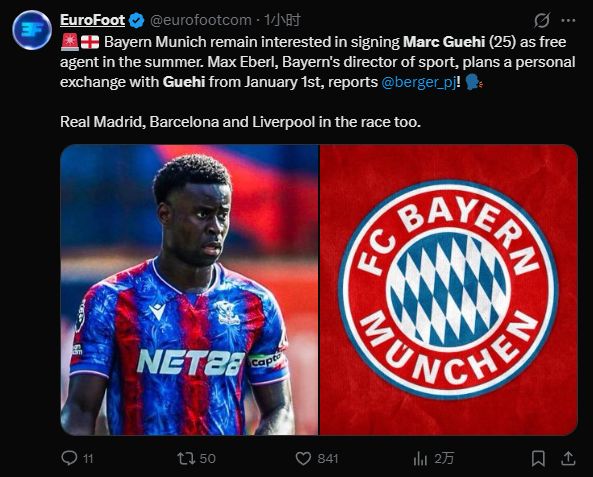 现如今,格伊与水晶宫的合同只剩最后几个月,他已明确告知俱乐部不会续约。德国天空体育报道称,拜仁体育总监马克斯·埃贝尔将于1月与格伊进行面谈,商讨转会事宜。拜仁希望能在明年夏天进行免签,此前埃贝尔已同球员的经纪人有过会面。